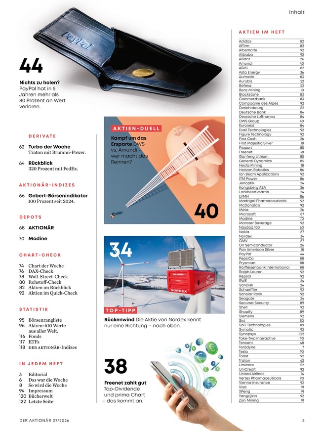 Der Aktionär gilt als das Pflichtblatt an allen deutschen Börsen, denn hier sehen Lesende nicht nur die aktuelle Börsenentwicklung gleich auf den ersten Seiten, vielmehr bietet das Magazin eine breite Mischung von Themen für jede Marktphase.