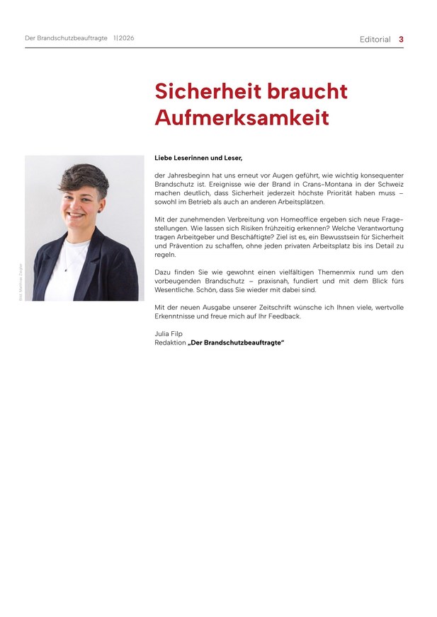Das Magazin „Der Brandschutzbeauftragte“ informiert kompakt und topaktuell über alle wichtigen Neuerungen im Brandschutz sowie über die regelmäßig anfallenden Aufgaben im Alltag eines Brandschutzbeauftragten.