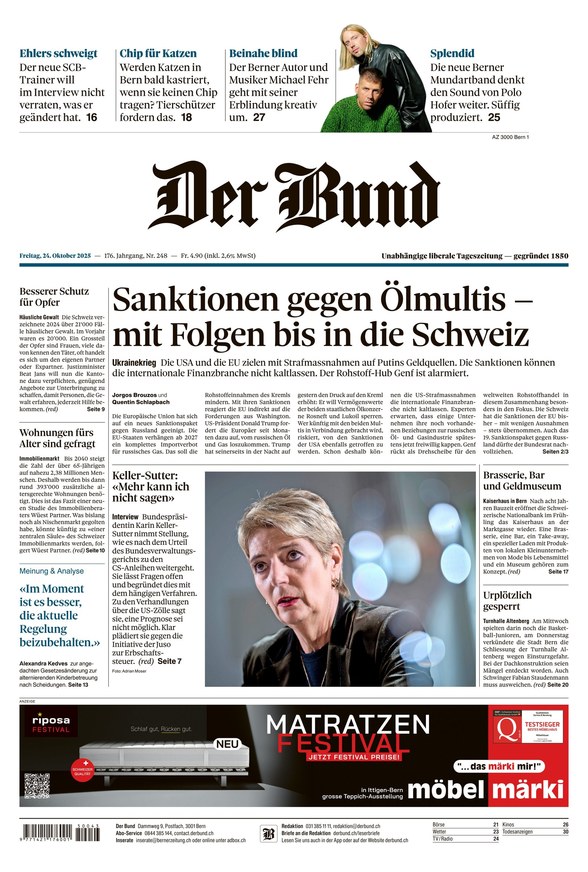 Der Bund ist seit 170 Jahren die Tageszeitung der Bundeshauptstadt Bern. Mit Hintergrundberichten und Analysen aus Politik, Wirtschaft, Lokalem, Kultur und Sport sowie Reportagen und pointierten Kommentaren bietet der Traditionstitel täglich aktuelles Lesevergnügen.