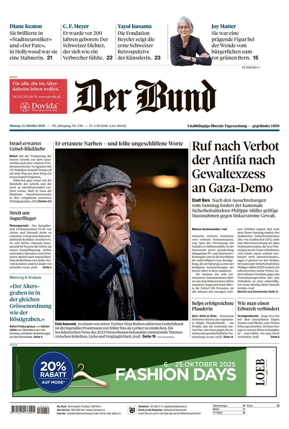 Der Bund ist seit 170 Jahren die Tageszeitung der Bundeshauptstadt Bern. Mit Hintergrundberichten und Analysen aus Politik, Wirtschaft, Lokalem, Kultur und Sport sowie Reportagen und pointierten Kommentaren bietet der Traditionstitel täglich aktuelles Lesevergnügen.