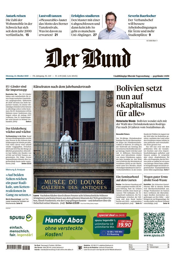 Der Bund ist seit 170 Jahren die Tageszeitung der Bundeshauptstadt Bern. Mit Hintergrundberichten und Analysen aus Politik, Wirtschaft, Lokalem, Kultur und Sport sowie Reportagen und pointierten Kommentaren bietet der Traditionstitel täglich aktuelles Lesevergnügen.