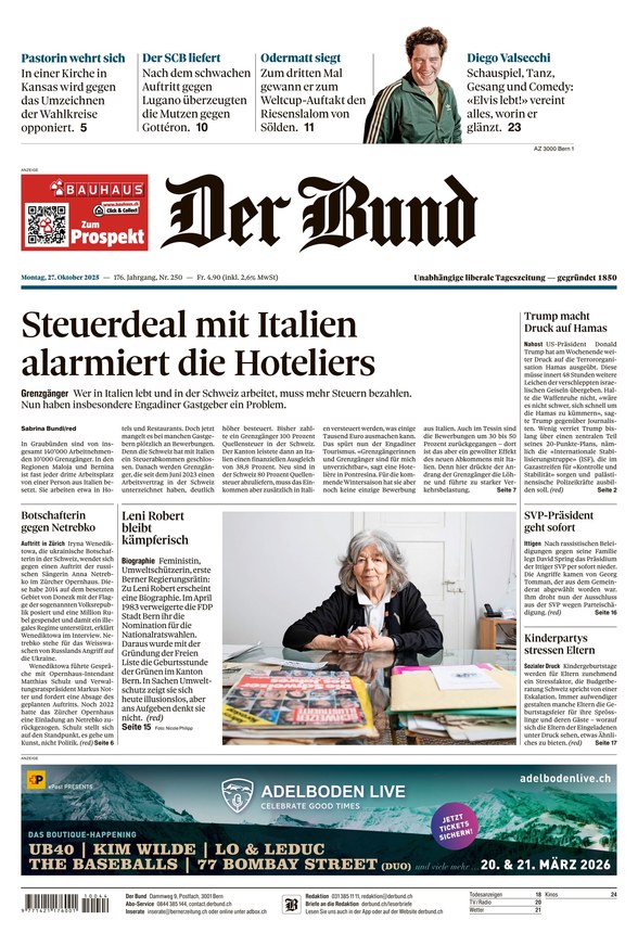 Der Bund ist seit 170 Jahren die Tageszeitung der Bundeshauptstadt Bern. Mit Hintergrundberichten und Analysen aus Politik, Wirtschaft, Lokalem, Kultur und Sport sowie Reportagen und pointierten Kommentaren bietet der Traditionstitel täglich aktuelles Lesevergnügen.