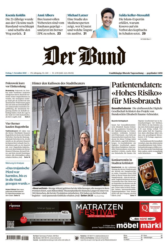 Der Bund ist seit 170 Jahren die Tageszeitung der Bundeshauptstadt Bern. Mit Hintergrundberichten und Analysen aus Politik, Wirtschaft, Lokalem, Kultur und Sport sowie Reportagen und pointierten Kommentaren bietet der Traditionstitel täglich aktuelles Lesevergnügen.