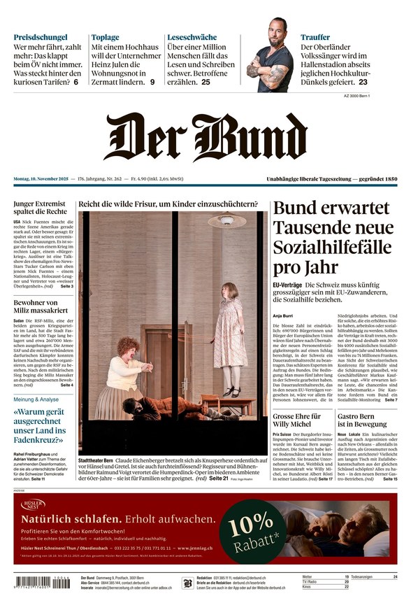 Der Bund ist seit 170 Jahren die Tageszeitung der Bundeshauptstadt Bern. Mit Hintergrundberichten und Analysen aus Politik, Wirtschaft, Lokalem, Kultur und Sport sowie Reportagen und pointierten Kommentaren bietet der Traditionstitel täglich aktuelles Lesevergnügen.