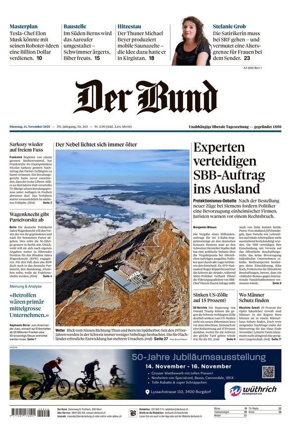 Der Bund ist seit 170 Jahren die Tageszeitung der Bundeshauptstadt Bern. Mit Hintergrundberichten und Analysen aus Politik, Wirtschaft, Lokalem, Kultur und Sport sowie Reportagen und pointierten Kommentaren bietet der Traditionstitel täglich aktuelles Lesevergnügen.
