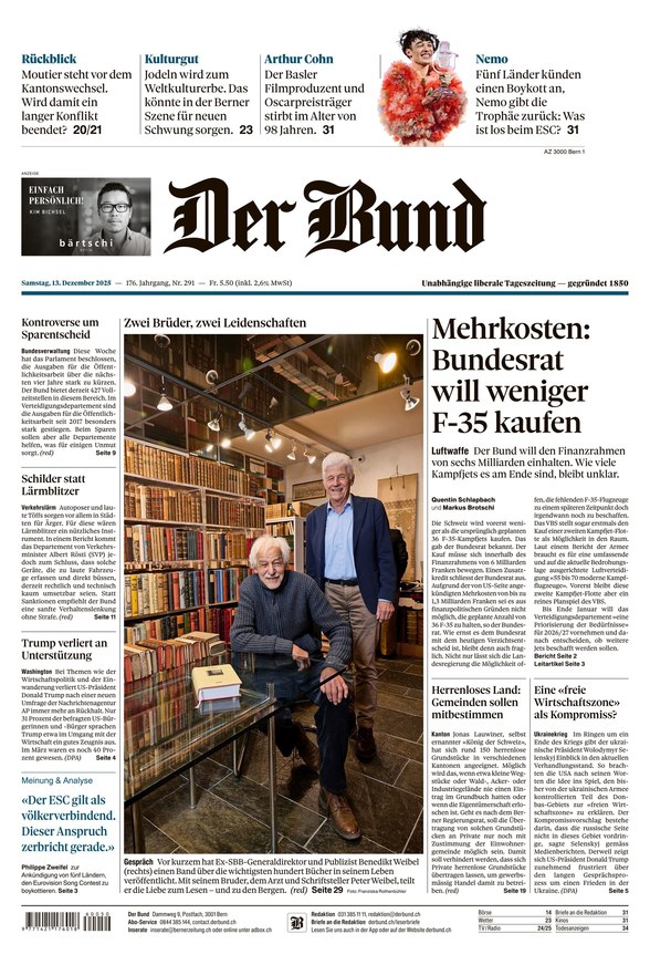 Der Bund ist seit 170 Jahren die Tageszeitung der Bundeshauptstadt Bern. Mit Hintergrundberichten und Analysen aus Politik, Wirtschaft, Lokalem, Kultur und Sport sowie Reportagen und pointierten Kommentaren bietet der Traditionstitel täglich aktuelles Lesevergnügen.
