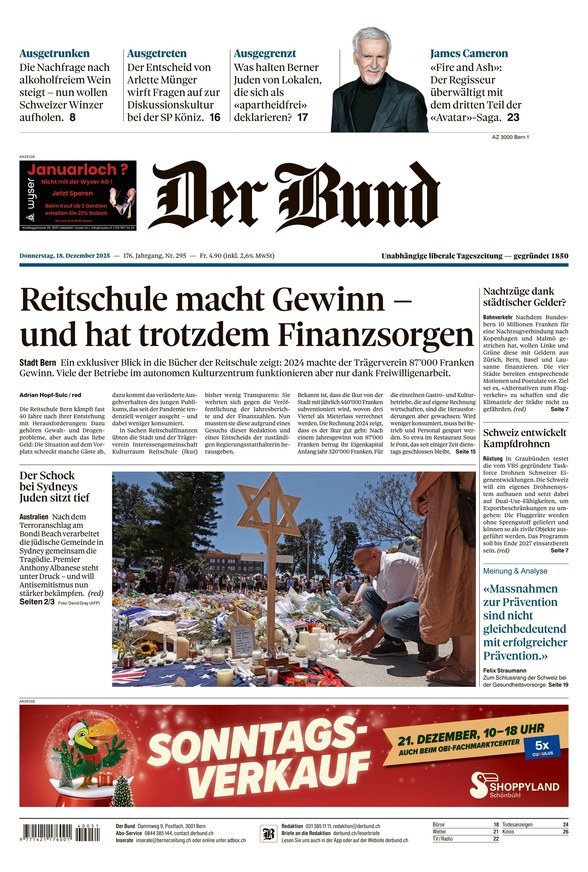Der Bund ist seit 170 Jahren die Tageszeitung der Bundeshauptstadt Bern. Mit Hintergrundberichten und Analysen aus Politik, Wirtschaft, Lokalem, Kultur und Sport sowie Reportagen und pointierten Kommentaren bietet der Traditionstitel täglich aktuelles Lesevergnügen.