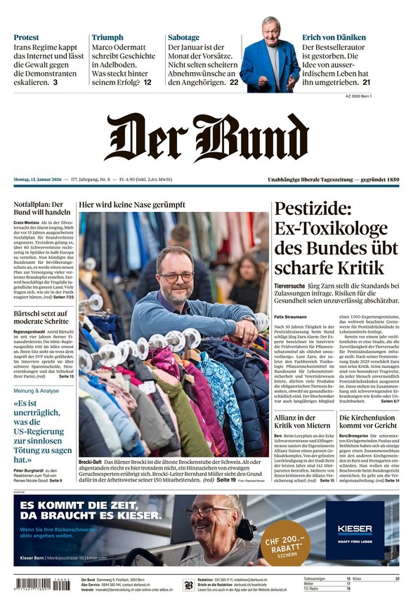 Der Bund ist seit 170 Jahren die Tageszeitung der Bundeshauptstadt Bern. Mit Hintergrundberichten und Analysen aus Politik, Wirtschaft, Lokalem, Kultur und Sport sowie Reportagen und pointierten Kommentaren bietet der Traditionstitel täglich aktuelles Lesevergnügen.