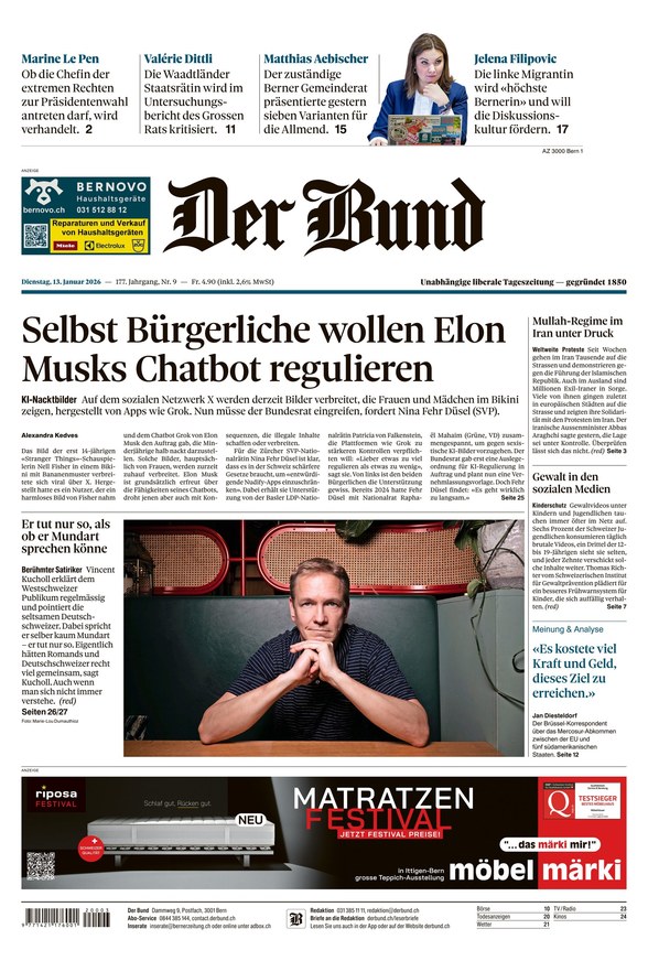 Der Bund ist seit 170 Jahren die Tageszeitung der Bundeshauptstadt Bern. Mit Hintergrundberichten und Analysen aus Politik, Wirtschaft, Lokalem, Kultur und Sport sowie Reportagen und pointierten Kommentaren bietet der Traditionstitel täglich aktuelles Lesevergnügen.