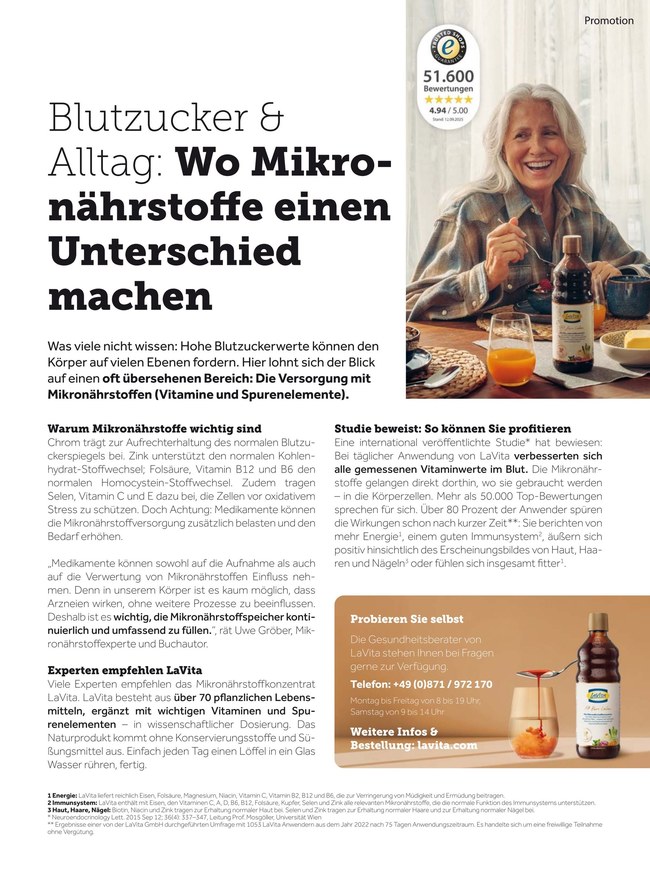 Diabetes Living ist das Ratgeber- und Lifestyle-Magazin, das sich rund um die diabetesfreundliche Ernährung, Gesundheit und das Messen der Blutzuckerwerte dreht. Weiterlesen...