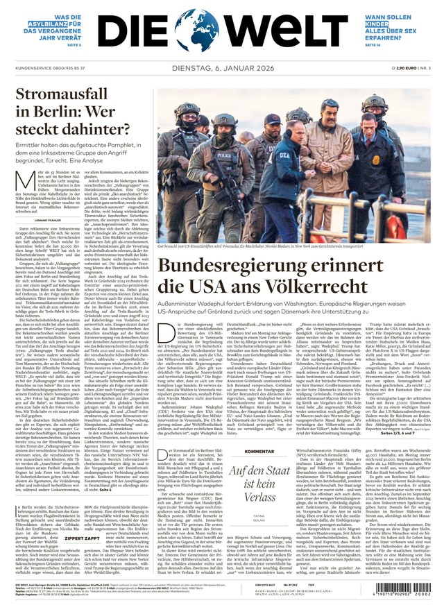 DIE WELT erscheint von Mo-Fr. DIE WELT berichtet über die neuesten Nachrichten aus dem In- und Ausland, Aktuelles aus Politik, Wirtschaft, Sport und Kultur. Das ePaper der Tageszeitung liefert alle relevanten News. Weiterlesen...