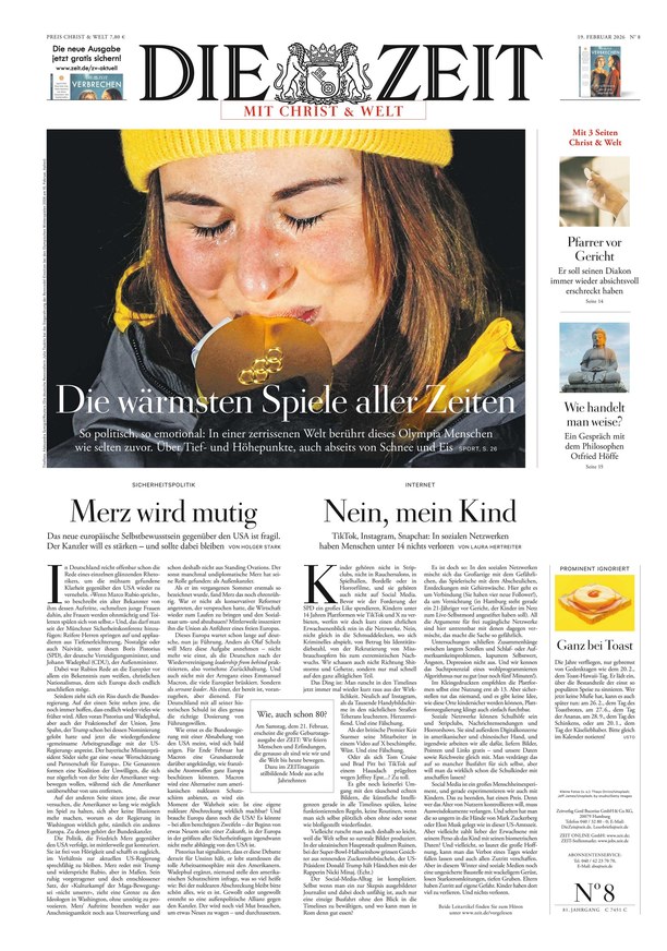 Vom 19.02.2026 Inklusive aller Regionalausgaben und Beilagen. Um diesen Titel zu lesen, bitten wir Sie "Die Zeit" zu kaufen.