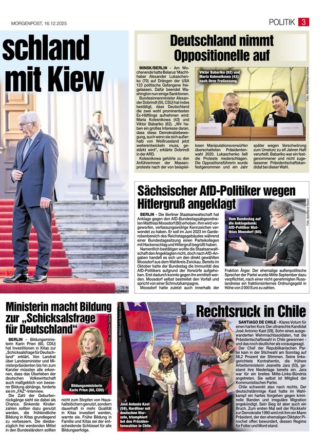 Alles, was in Dresden und Umgebung wichtig ist, erfahren Sie täglich in der Dresdner Morgenpost. Das ePaper der Tageszeitung erscheint von Montag bis Samstag.