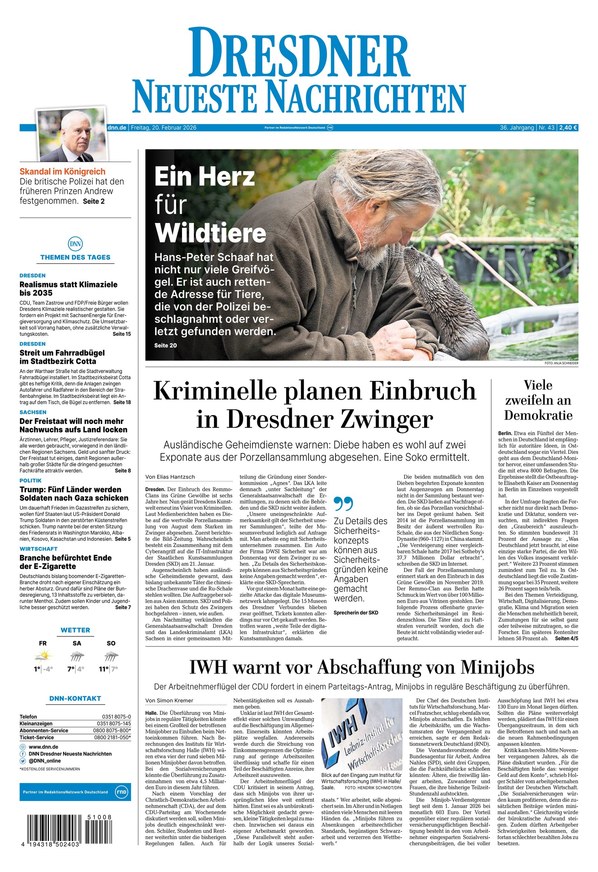 Bleiben Sie mit der Tageszeitung Dresdner Neueste Nachrichten (DNN) über alles, was in Dresden wichtig ist, informiert. Das ePaper liefert Nachrichten aus der sächsischen Hauptstadt - und darüber hinaus. Weiterlesen...