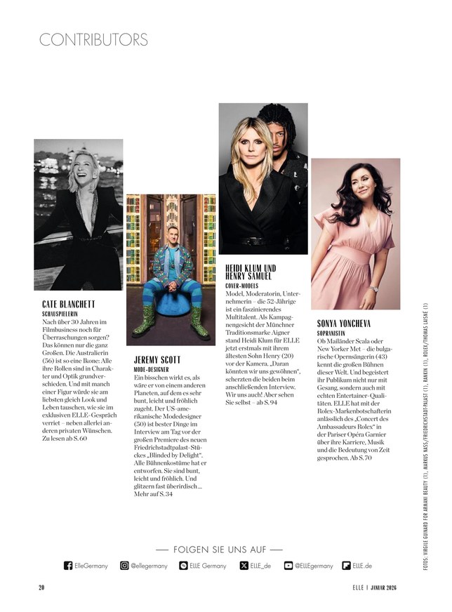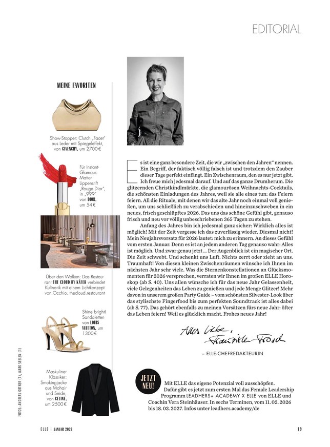 Fashion, Styling-Tipps, Models, Designer und Trends: Für diese Themen steht die monatlich erscheinende Frauenzeitschrift ELLE wie keine andere. Von Frankreich aus startete das Magazin, dessen Titel übersetzt ganz einfach "sie" bedeutet, einst seinen Siegeszug und ist heute eine der größten Zeitschriften weltweit im Fashion-Bereich. ELLE ist auch als ePaper erhältlich - als Einzelausgaben oder im Abonnement.