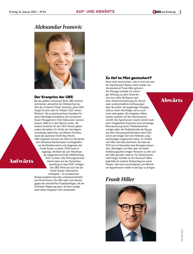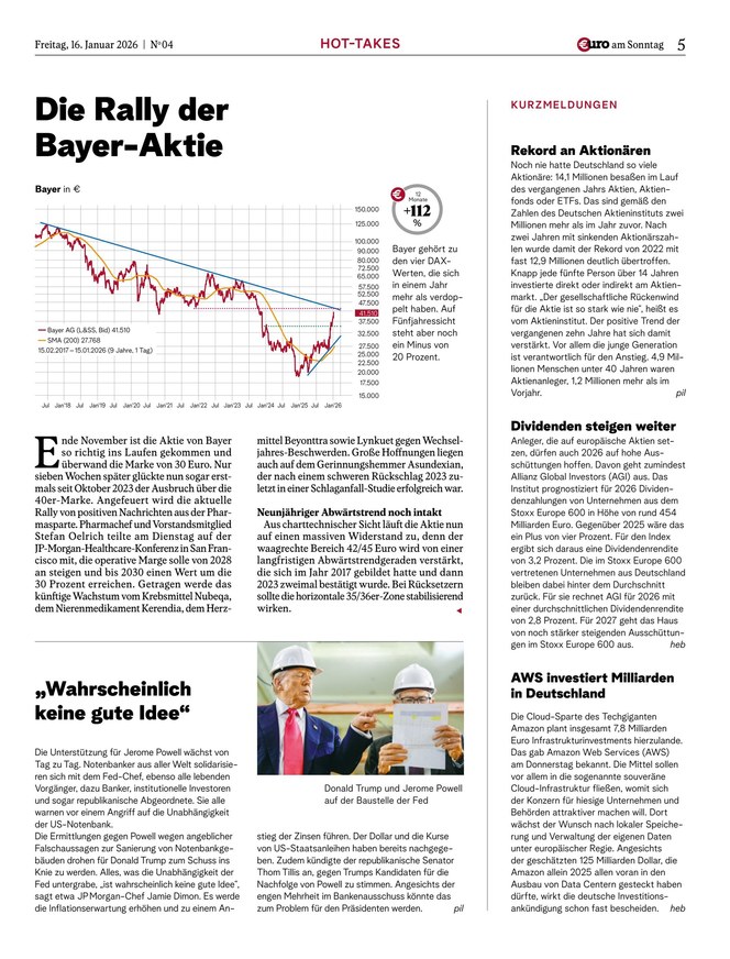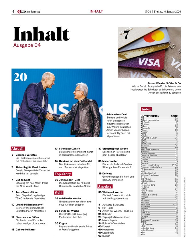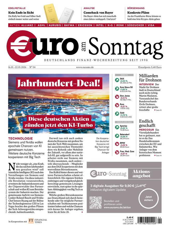 Mit €uro am Sonntag, Deutschlands Finanz-Wochenzeitung seit 1998, haben Anleger die wichtigsten Themen der Börsenwoche stets im Blick.