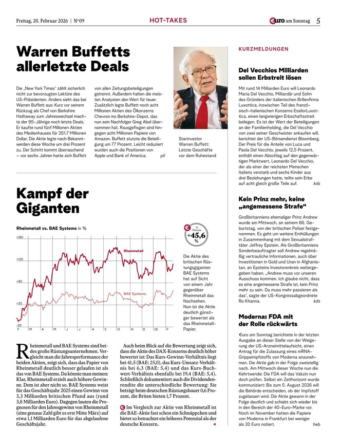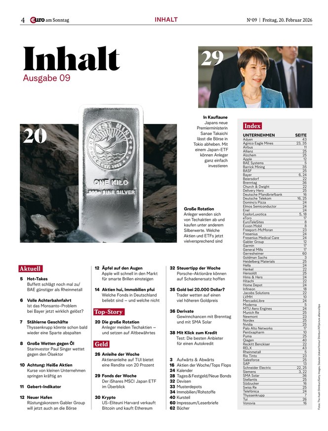 Mit €uro am Sonntag, Deutschlands Finanz-Wochenzeitung seit 1998, haben Anleger die wichtigsten Themen der Börsenwoche stets im Blick.