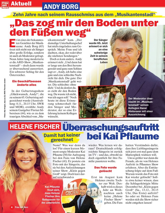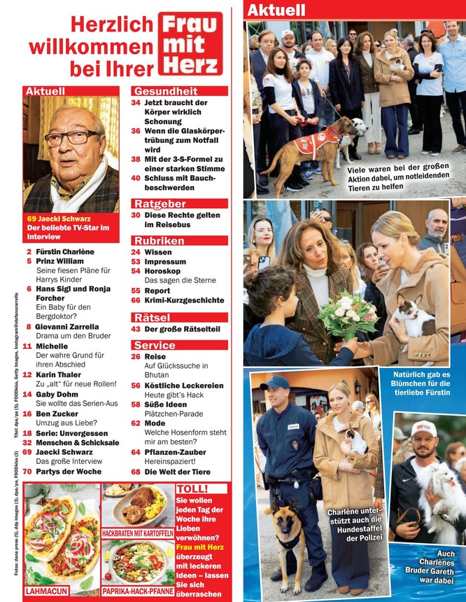 Abgerundet wird die Heftmischung mit packenden Schicksalsgeschichten, Lebensberatung sowie einem Rätselteil mit attraktiven Gewinnen, einem knappen Fernsehprogramm für die Woche, Horoskop und Humor.