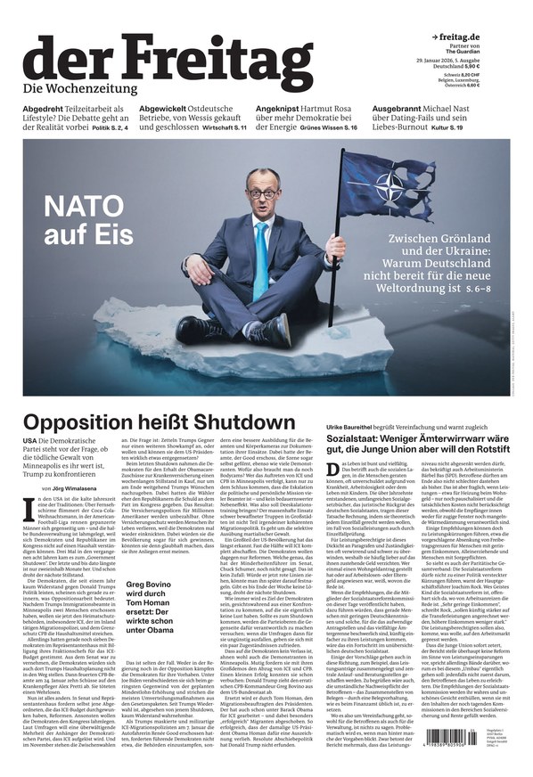 der Freitag informiert über alles Wichtige aus den Bereichen Politik, Kultur und Alltag. Einmal im Monat erscheint die Wochenzeitung auch mit einem Wirtschaftsteil. Weiterlesen...