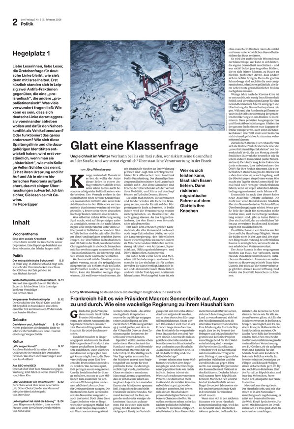 Die Wochenzeitung "der Freitag" liefert Hintergründe, fordert zum gesellschaftlichen Dialog auf und trägt selbst mit kritischen und konstruktiven Meinungen dazu bei. Erscheinungstag ist trotz des Namens nicht der Freitag selbst, sondern der Donnerstag jeder Woche. Sie können das Freitag-ePaper sowohl als Einzelausgaben als auch im Abonnement beziehen.
