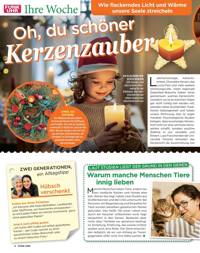 Außerdem Reportagen über besondere Menschen, Geschichten voller Emotionalität und jeden Monat ein Wunschthema.