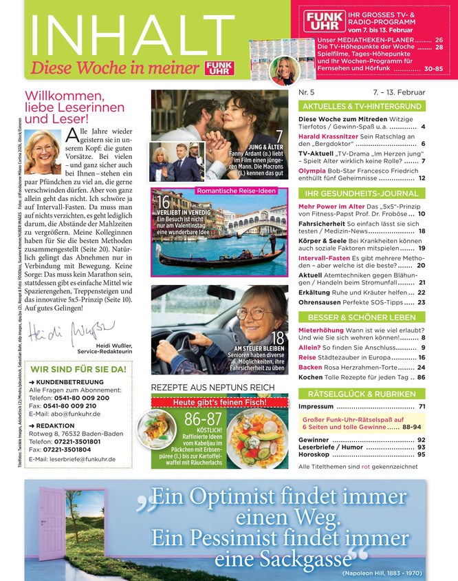 Sie möchten die aktuelle FUNK UHR lesen und bei spannenden, lustigen oder emotionalen Artikeln mitfiebern? Dann nutzen Sie das ePaper aus dem iKiosk oder greifen Sie auf die PDF-Version von FUNK UHR zurück. Lesen Sie Ihre Lieblingszeitung ganz bequem direkt auf Ihrem Endgerät, beispielsweise dem Smartphone oder Tablet. Darüber hinaus stellen wir Ihnen außerdem weitere vergangene Ausgaben bereit, die Sie in unserem Archiv finden.
