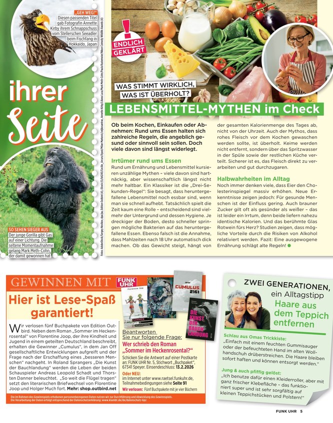 Rund um das ausführliche TV-Programm bietet FUNK UHR Schwerpunktthemen wie Gesundheit und Wellness, Hintergrundinformationen und aktuelle News zu Ernährung, Mode, Beauty, Partnerschaft und Familie, Tipps zu Geld, Recht und Haushalt. Weiterlesen...