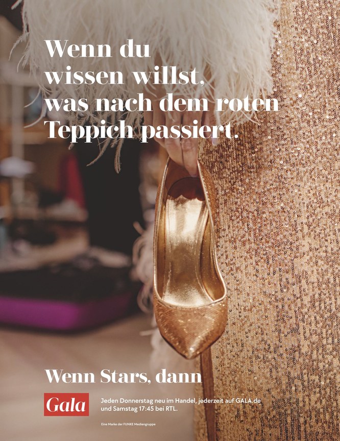 Das People-Magazin Gala berichtet wöchentlich über alle wichtigen Themen aus den Bereichen Stars, Royals, Beauty, Fashion, Lifestyle und Promi-News. Die Zeitschrift, die von Gruner + Jahr herausgegeben wird, erscheint wöchentlich - Donnerstag ist Gala-Tag. Das Magazin ist nicht nur in der gedruckten Ausgabe erhältlich, sondern auch als ePaper. Dieses können Sie mobil und unkompliziert auf dem Smartphone, Tablet oder Computer lesen.