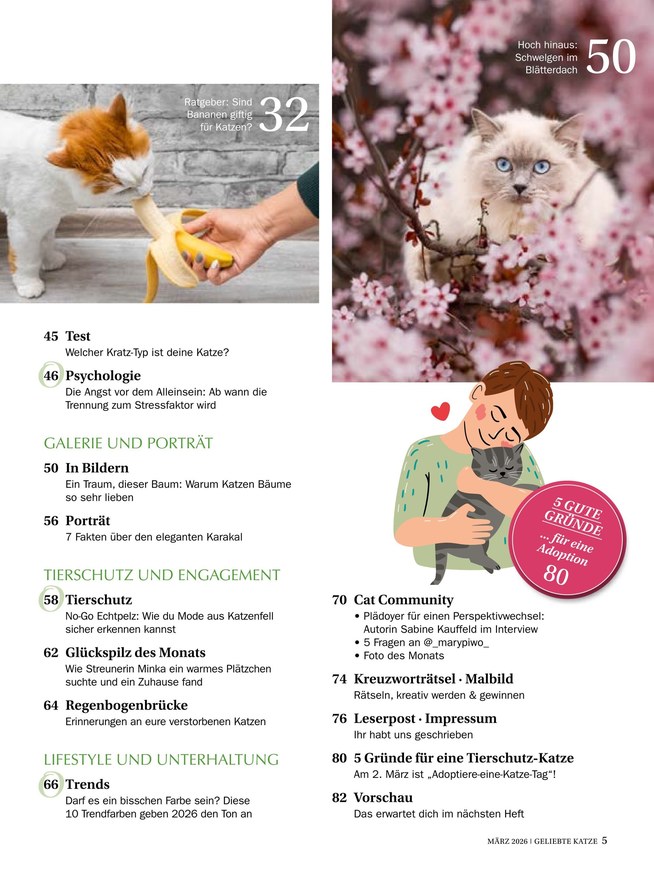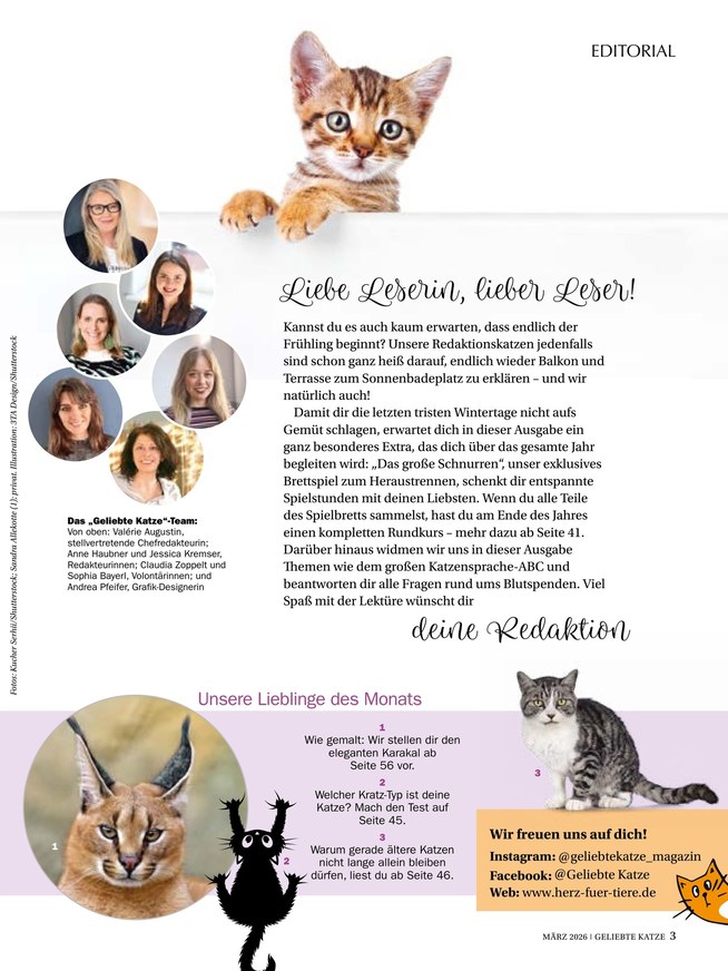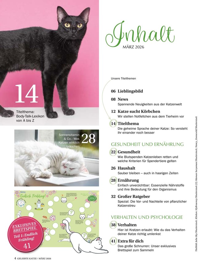 Folgende Ressorts und Rubriken finden Sie in jeder Ausgabe von Geliebte Katze: