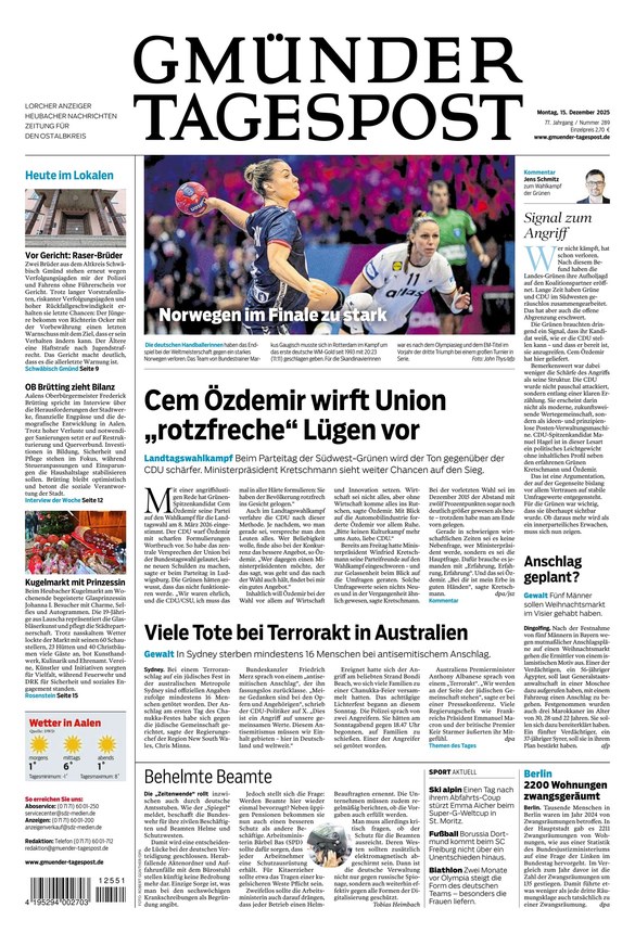 Die Gmünder Tagespost ist die lokale Tageszeitung im Ostalbkreis. Das ePaper informiert von Montag bis Samstag über alle wichtigen Themen in der Region und darüber hinaus. Weiterlesen...