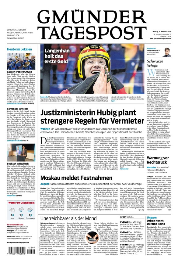 Die Gmünder Tagespost ist die lokale Tageszeitung im Ostalbkreis. Das ePaper informiert von Montag bis Samstag über alle wichtigen Themen in der Region und darüber hinaus. Weiterlesen...