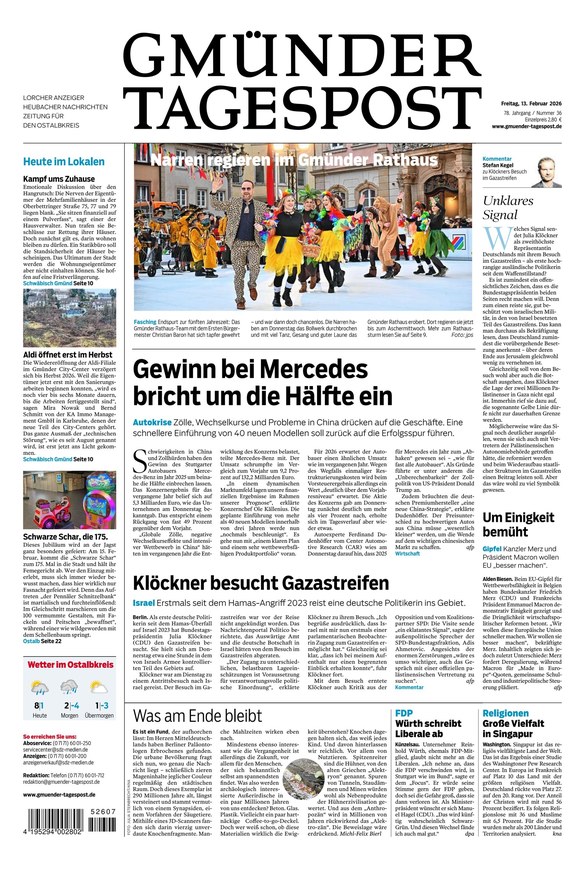 Die Gmünder Tagespost ist die lokale Tageszeitung im Ostalbkreis. Das ePaper informiert von Montag bis Samstag über alle wichtigen Themen in der Region und darüber hinaus. Weiterlesen...