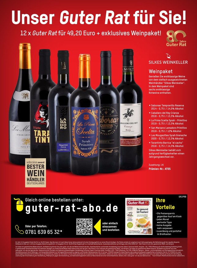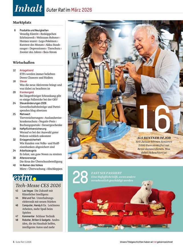 Das Verbrauchermagazin Guter Rat hält, was sein Name verspricht: Im monatlich erscheinenden ePaper finden Sie umfangreiche Tests und Checks von Produkten und Dienstleistungen aus allen Lebensbereichen. Profitieren Sie von unabhängigen Tests, lassen Sie sich vor Kaufentscheidungen von Experten beraten. Besonders praktisch: Sie können die digitale Ausgabe von Guter Rat nicht nur online lesen, sondern das ePaper zusätzlich als PDF herunterladen.