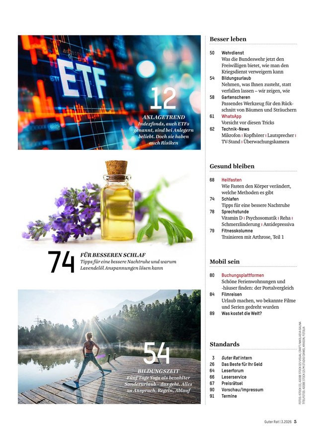 Krankenversicherungen, Beauty-Produkte, Autos und vieles mehr: Das unabhängige Verbrauchermagazin Guter Rat nimmt so gut wie alles kritisch unter die Lupe! Das ePaper bietet Orientierung in allen Lebensbereichen. Weiterlesen...