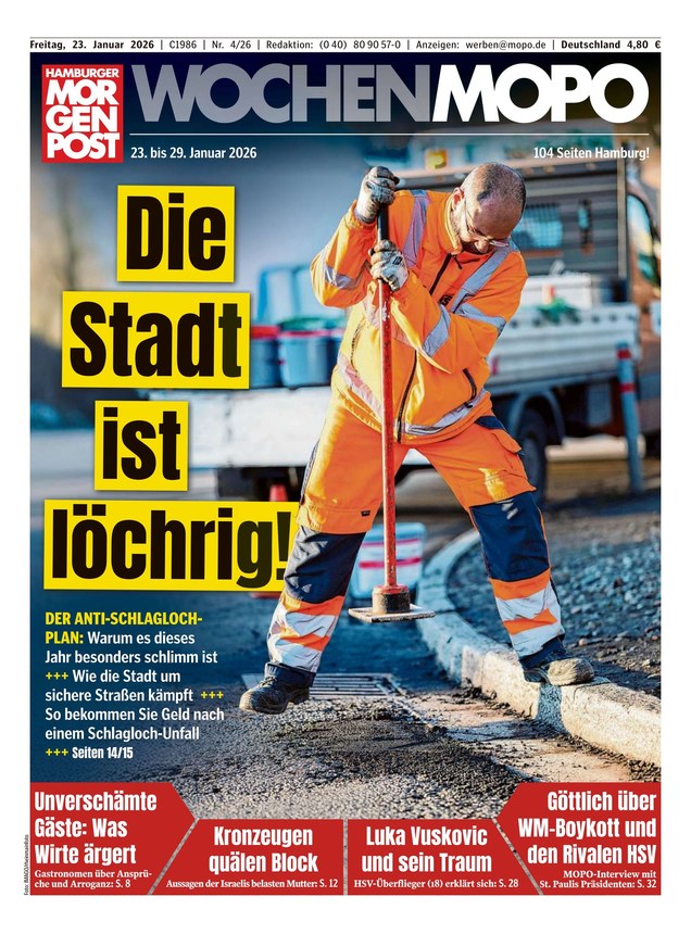 Die Hamburger Morgenpost erscheint jeden Freitag gedruckt und als ePaper und begleitet Sie auf mindestens 104 Seiten voller spannender Geschichten durch die gesamte Woche. Die Hamburger Morgenpost liefert Ihnen echte Geschichten und nimmt kein Blatt vor den Mund. Sie geht hinter die Kulissen und ermöglicht so einen einzigartigen Blick auf „das Tor zur Welt“.