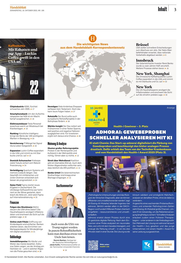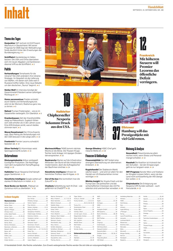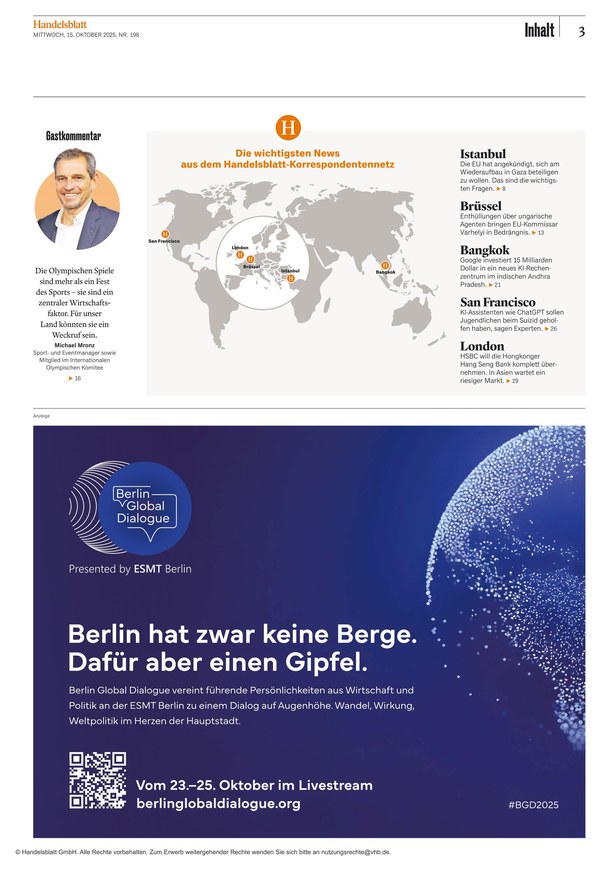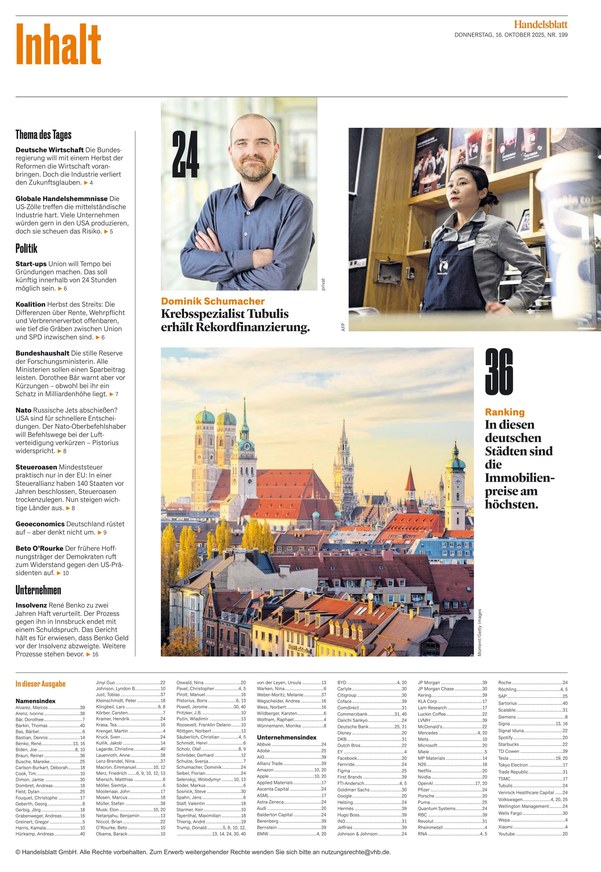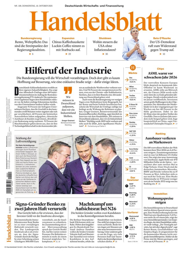 Das Handelsblatt informiert über alles Wichtige rund um Unternehmen, Finanzen, Politik und Technik. Das ePaper der Tageszeitung ist auf Wirtschaftsnachrichten aus Deutschland und der Welt fokussiert. Weiterlesen...