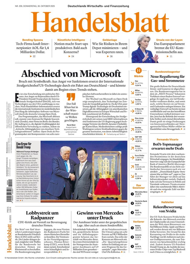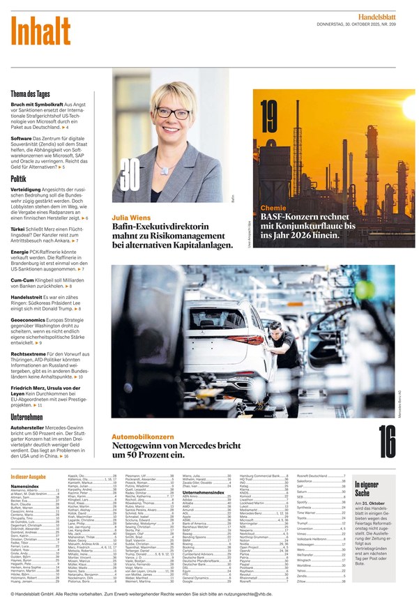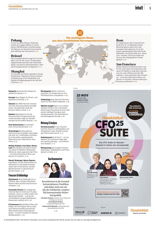 Das Handelsblatt informiert über alles Wichtige rund um Unternehmen, Finanzen, Politik und Technik. Das ePaper der Tageszeitung ist auf Wirtschaftsnachrichten aus Deutschland und der Welt fokussiert. Weiterlesen...