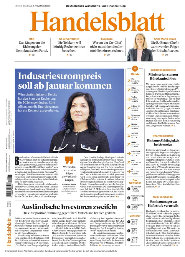 Das Handelsblatt informiert über alles Wichtige rund um Unternehmen, Finanzen, Politik und Technik. Das ePaper der Tageszeitung ist auf Wirtschaftsnachrichten aus Deutschland und der Welt fokussiert. Weiterlesen...
