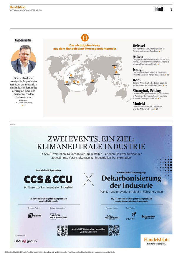 Montag bis Freitag sind jeweils Handelsblatt-Tage. Wenn Sie es gewohnt sind, sich unter der Woche über die wichtigen Themen aus der Finanzwelt zu informieren und gerne die aktuellsten Börsen-News lesen möchten, dann ist das ePaper des Handelsblattes genau richtig für Sie. Die digitale Tageszeitung der Wirtschafts- und Finanzzeitung ist identisch mit der gedruckten Ausgabe und kann von Ihnen täglich und unabhängig von der Uhrzeit von jedem beliebigen Ort aus per Computer, Handy oder Tablet abgerufen werden.