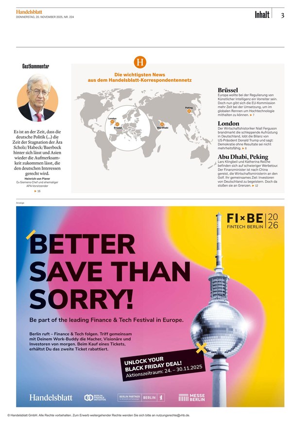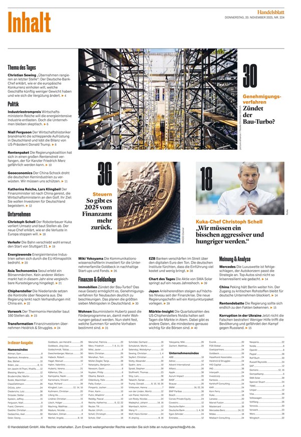 Das Handelsblatt informiert über alles Wichtige rund um Unternehmen, Finanzen, Politik und Technik. Das ePaper der Tageszeitung ist auf Wirtschaftsnachrichten aus Deutschland und der Welt fokussiert. Weiterlesen...