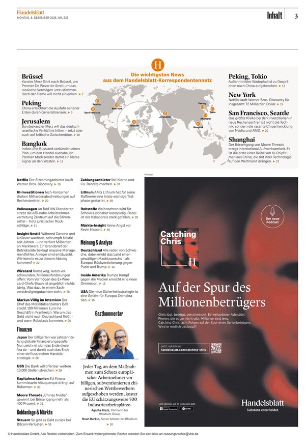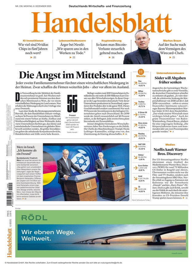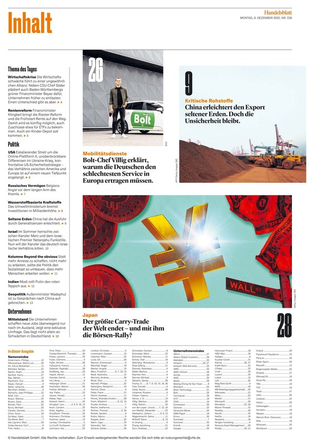 Das Handelsblatt informiert über alles Wichtige rund um Unternehmen, Finanzen, Politik und Technik. Das ePaper der Tageszeitung ist auf Wirtschaftsnachrichten aus Deutschland und der Welt fokussiert. Weiterlesen...