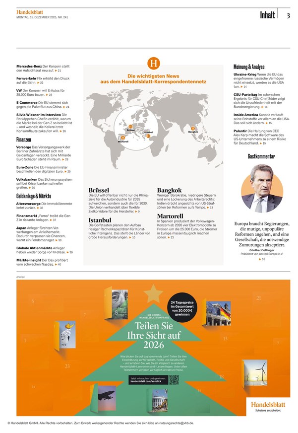 Montag bis Freitag sind jeweils Handelsblatt-Tage. Wenn Sie es gewohnt sind, sich unter der Woche über die wichtigen Themen aus der Finanzwelt zu informieren und gerne die aktuellsten Börsen-News lesen möchten, dann ist das ePaper des Handelsblattes genau richtig für Sie. Die digitale Tageszeitung der Wirtschafts- und Finanzzeitung ist identisch mit der gedruckten Ausgabe und kann von Ihnen täglich und unabhängig von der Uhrzeit von jedem beliebigen Ort aus per Computer, Handy oder Tablet abgerufen werden.