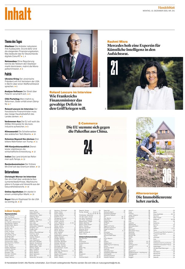 Das Handelsblatt informiert umfassend in den Ressorts Wirtschaft & Politik, Unternehmen & Märkte, Meinung & Debatte, Finanzen & Börsen sowie Namen. Wirtschaft, Finanzen und das digitale Zeitalter sind untrennbar miteinander verbunden. So versteht es sich quasi von selbst, dass das Handelsblatt nicht nur gedruckt, sondern auch als digitale Tageszeitung in Form eines ePapers erhältlich ist.