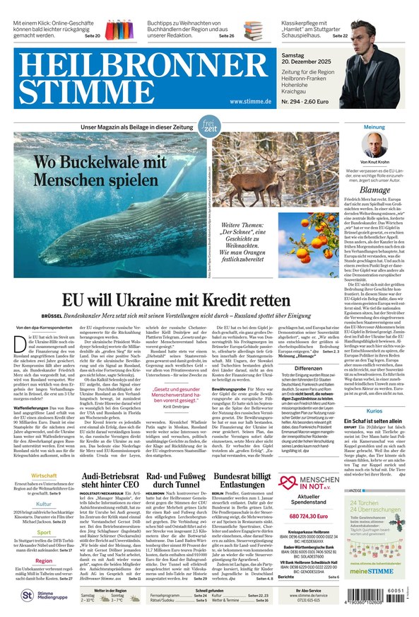 Die digitale Ausgabe Ihrer Heilbronner Stimme versorgt Sie mit Nachrichten, Hintergrundgeschichten und Reportagen aus den Regionen Heilbronn, Hohenlohe und Kraichgau sowie dem Rest der Welt. Lesen Sie die führende Tageszeitung des Unterlands als E-Paper! Weiterlesen...