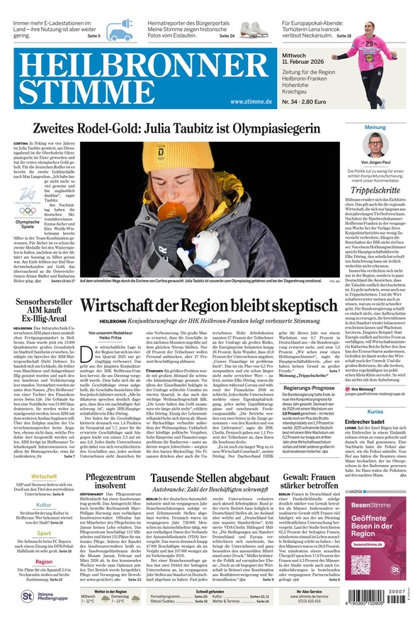 Die Region im Herzen, die Welt im Blick – das ist die Mission der Heilbronner Stimme. Lesen Sie faktenbasiert über aktuelle Nachrichten und Themen und erfahren Sie, welche Auswirkungen diese auf die Wirtschaftsregion Heilbronn haben. Rund 100 Redakteure arbeiten in der Vollredaktion und befüllen die sieben Lokalausgaben. Zudem verfügt das Medienunternehmen über Redaktionsbüros in Stuttgart, Berlin und Brüssel sowie Korrespondenten in Washington, New York, London, Moskau, Paris, Warschau, Ankara, Madrid und St. Petersburg.