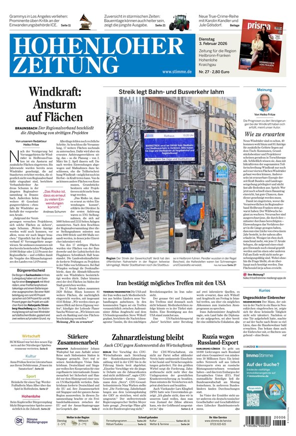 Die Region im Herzen, die Welt im Blick – das ist die Mission der Hohenloher Zeitung. Lesen Sie faktenbasiert über aktuelle Nachrichten und Themen und erfahren Sie, welche Auswirkungen diese auf Hohenlohe haben. Rund 100 Redakteure arbeiten in der Vollredaktion und befüllen die sieben Lokalausgaben. Zudem verfügt das Medienunternehmen über Redaktionsbüros in Stuttgart, Berlin und Brüssel sowie Korrespondenten in Washington, New York, London, Moskau, Paris, Warschau, Ankara, Madrid und St. Petersburg.
