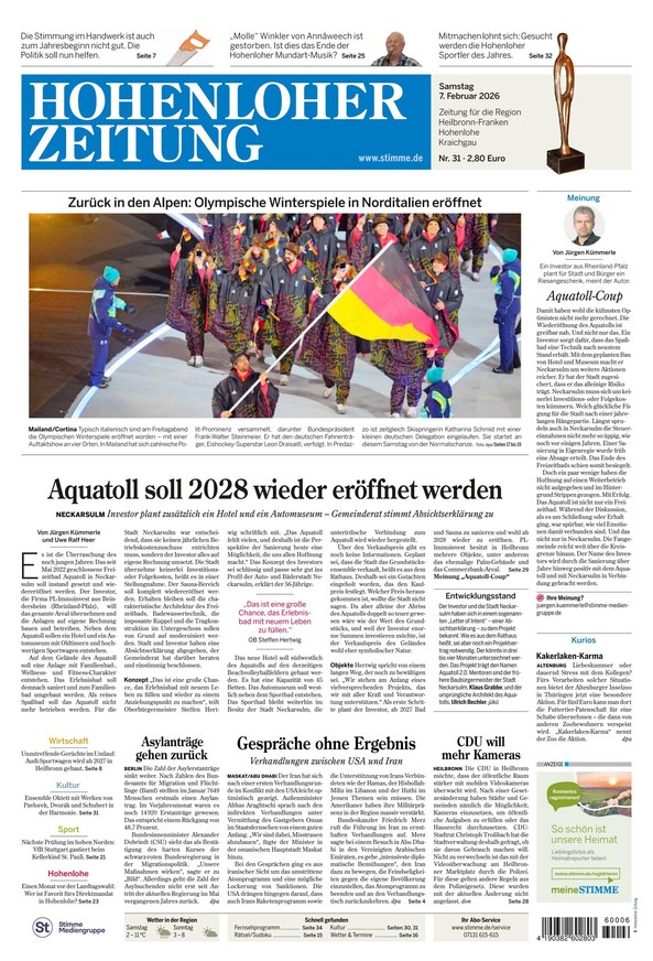 Vom 07.02.2026 Jahresabonnement bei United Kiosk Die Hohenloher Zeitung hat ab sofort keine Regionalausgaben