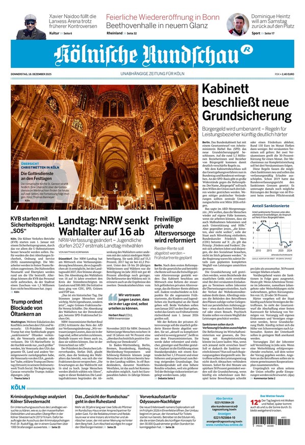Die Kölnische Rundschau berichtet über alles, was im Raum Köln/Bonn wichtig ist. Bleiben Sie mit dem ePaper der lokalen Tageszeitung über alle wichtigen Themen und Nachrichten aus der Region informiert. Weiterlesen...