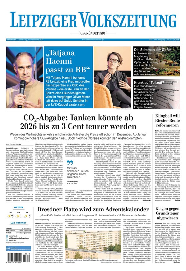 Sie interessieren sich für alles, was in Leipzig und um Leipzig herum passiert? Zusätzlich wollen Sie alle relevanten Nachrichten aus Deutschland und der Welt erfahren? Dann ist die Leipziger Volkszeitung (LVZ) die ideale Tageszeitung für Sie. Von Montag bis Sonntag erfahren Sie in der LVZ, die auch als ePaper erhältlich ist, alle wichtigen News.