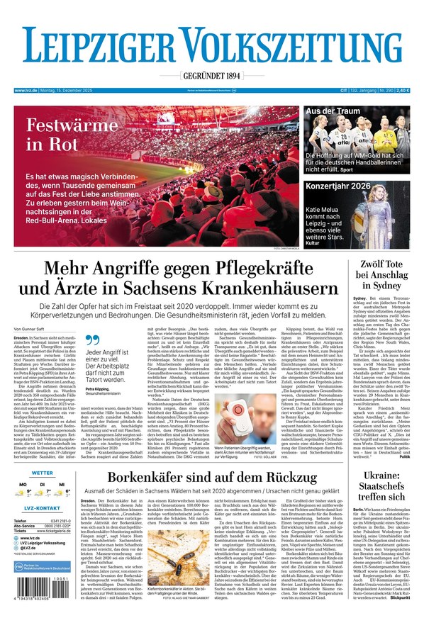 Lokale Themen bestimmen die Berichterstattung der Leipziger Volkszeitung - und trotzdem bleibt das große Ganze im Fokus, in Sachen nationaler und internationaler Nachrichten kann man sich gleichermaßen auf die LVZ verlassen. Die Tageszeitung verfügt über einen großen lokalen Teil, der alles Wichtige aus und zur Stadt Leipzig aus vielen Bereichen wie Politik, Wirtschaft, Sport, Kultur, Gesellschaft und mehr beinhaltet. Dazu kommen überregionale Berichte die sich vom bundesdeutschen Geschehen bis hin zu weltweit aktuellen Begebenheiten erstrecken.